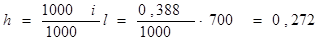 4 Расчет водоводов На участие НС - 1 наибольший расход, равный 346,23 л/с, имеет место при подаче максимального хозяйственно-питьевого расхода плюс пожар. На этом участке намечается к прокладке 2 стальных водовода и ведется расчет на пропуск одним водоводом 50% полного расхода, т.е. 173,12 л/с. Длина водовода 700 м. Диаметр назначается равным 700 мм. По таблице II [11] 1000i = 0,388, υ = 0,44 м/с