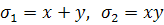 Отже, дістаємо остаточно РОЗДІЛ IІ. ЗАСТОСУВАННЯ СИМЕТРИЧНИХ МНОГОЧЛЕНІВ 2.1 Розв’язування систем рівняньДуже часто зустрічаються системи рівнянь, ліві частини яких симетрично залежать від невідомих x, y. В цьому випадку зручно перейти до нових невідомих Після того, як знайдені значення величин Теорема. Нехай