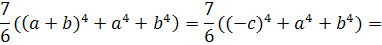 Для доведення позначимо число (– a – b) через c: с = – a – b. Тоді a + b + c = 0 і можна застосувати формули, запропоновані у таблиці 2. 2. Ліва частина доводжуваної тотожності перетвориться таким чином: