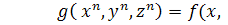 Як же знайти такий многочлен g? Спробуємо використовувати симетричні многочлени. Простими прикладами симетричних многочленів, залежних тільки від (n – x) степеней змінних x, y, z , можуть служити степеневі суми