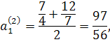 Добуток всіх чисел другого наближення знову рівний N. Потім по числах другого наближення складемо третє наближення Можна довести, що при кожна з величин що складає n-те наближення, прямує до Приклад 1. При k = 2, тобто при вилученні квадратного кореня ми маємо такі формули: