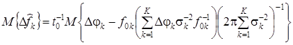 Исследуем статистические характеристики нескомпенсированного отклонения частоты k -го генератора (математическое ожидание и дисперсию). Перепишем выражение (40), раскрыв значение оценки отклонения частоты k -го генератора с использованием соотношения (21):
