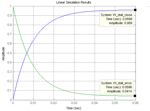 Рисунок 1.1 – Переходная функция статической замкнутой системы Для наблюдения за реакцией системы на различные воздействия удобно составить M-file со следующим программным кодом: