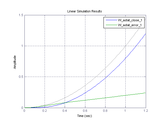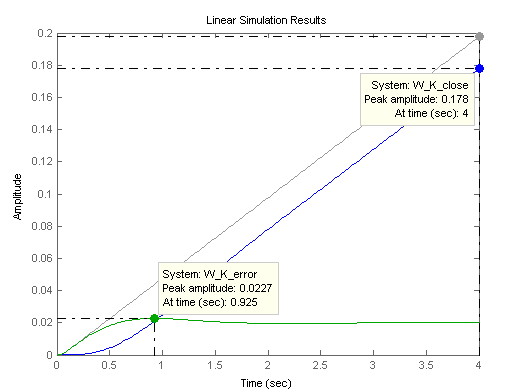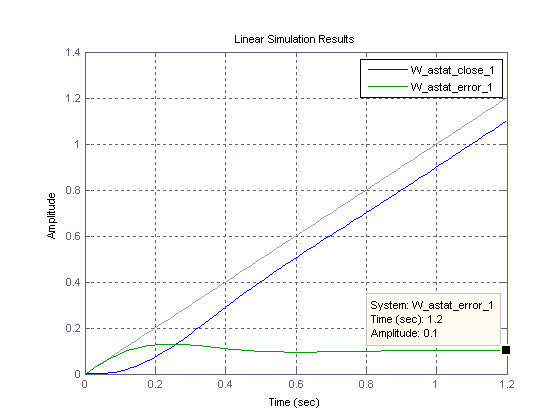Система в замкнутом состоянии является статической, тогда исходя из аналитических расчетов: - ошибка по положению равна; - ошибка по скорости и ускорению равна Переходная функция замкнутой системы представлена на рисунке 1.1. Из рисунка 1.1 видно, что статическая ошибка системы равна