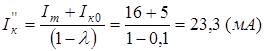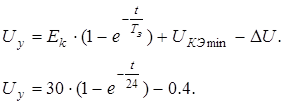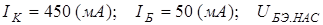 З графічних побудов знаходимо: Uкн = 2,5 (B); Iкн = I”к = 23,3 (мА);Uб0 = 1,35 (В); Uб.макс = 2,85 (В). Тоді