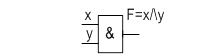 Рисунок 1.1-Условные обозначения логических элементов НЕ, И, ИЛИ, И-НЕ, ИЛИ-НЕ Входные переменные принято изображать слева, а выходные — справа. Считается, что передача информации происходит слева направо. Если выходы одних элементов соединить со входами других, то получим схему, реализующую более сложную функцию. Совокупность различных типов элементов, достаточных для воспроизведения любой логической функции, назовем логическим базисом. Элементы И и НЕ представляют такой логический базис. Логический базис может состоять всего лишь из одного типа элементов, например элемента типа И─НЕ, схема которого показана на рис. 1.2.