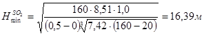 Предварительное значение минимальной высоты дымовой трубы, м,