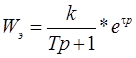 По полученному графику переходного процесса определим значения коэффициентов k, T, τ. k = 1 T = 1833 с. τ = 62 c. Принимая во внимание тот факт, что переходную характеристику экструдера удалось снять всего один раз, чего явно не достаточно для точной идентификации объекта, для последующего исследования и настройки параметров регулятора зададимся следующими параметрами: k = 1 T = 1800 с. τ = 60 c. Составим структурную схему и промоделируем переходный процесс используя компьютерный пакет MatLabSimulink.