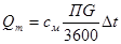 где см – теплоемкость мяса, Дж/кг∙К, см =3.31 кДж/кг [10.с.273]; П – производительность шпарильного чана, шт/ч; G – масса одной тушки, кг; ∆t – разность температур нагрева бройлера, ˚С;