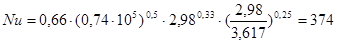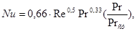 б) Критерий Nu при продольном обтекании плоской поверхности при Re<5·105 определяется по формуле, [8.с.158] :