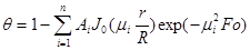 где r – глубина залегания пера (r=0,05м); R – радиус тушки птицы. Для нахождения безразмерной температуры необходимо решить уравнение: