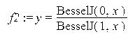 - f1:=y=x/Bi;f2:=y=BesselJ(0,x)/BesselJ(1,x);