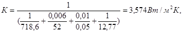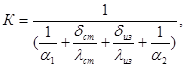 =l∙b=8.595∙2.4=20.628м Qсум =265,074∙20.628∙(60-17)∙32 =7523.894кДж Коэффициент теплоотдачи К (Вт/м2 К):