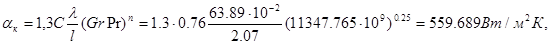 При свободном режиме движения жидкости в чане принимают l=H, где H – высота чана. Коэффициенты С и n в зависимости от вида и режима течения равны: Gr∙Pr=3846.7∙109 ∙2.95=11347.765∙109 (GrPr)>109 , следовательно режим течения – турбулентный; С=0,15; n=0,33