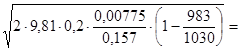 где πR – длина обтекания туши, м; w – скорость обтекания конвейера, м/с; Примем, что скорость движения конвейера равна скорости набегания потока воды на тушу, (w=0,266м/с); νж – кинематический коэффициент вязкости, м2 /с; tж – температура жидкости, ˚С.