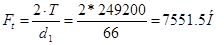 где d1 - делительный диаметр колеса быстроходной ступени , z1-число зубьев колеса, m – модуль зацепления. Радиальное усилие /1/ с.279: