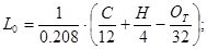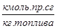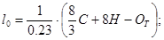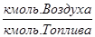 где От - содержание кислорода в составе топлива; С - содержание углерода в составе одного кг топлива (по заданию 0,848); Н - содержание водорода в составе одного кг топлива (по заданию 0,152). В киломолях: