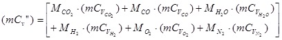 где (mCv ”) – средняя изохорная мольная теплоемкость газовой смеси с составом продуктов сгорания после окисления топлива: