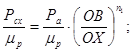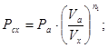где Pсх - искомое текущее давление в процессе сжатия. Текущее отношение объемов Va /Vx =OB/OХ принимаем с шагом 10мм (восемь промежуточных точек) в пределах от 1 до e - значения степени сжатия. Аналогично для политропы расширения: