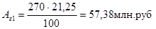 Таким образом, стоимость основных производственных фондов на конец периода будет равна нулю. Всего амортизационные отчисления составят 270 млн. руб. 3. Расчитаем размер ежегодных амортизационных отчислений методом уменьшаемого остатка. Норму амортизации рассчитываем по формуле: