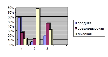 Анализ таблицы 2 показал. уровень реальной самооценки среди испытуемых: - средняя – 7 человек (60%); - средневысокая – 2 человек (27%); - высокая – 1человека (13%). уровень идеальной самооценки среди испытуемых: - средняя – 1 человек (7%); - средневысокая – 2 человека (14%); - высокая – 12 человека (79%). уровень достижимой самооценки среди испытуемых: - средняя – 2 человека (20%); - средневысокая – 5 человек (33%); - высокая – 3 человек (47%).