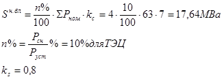 8. ВЫБОР СХЕМЫ СОБСТВЕННЫХ НУЖД И ТРАНСФОРМАТОРОВ СОБСТВЕННЫХ НУЖД электростанция трансформатор реактор напряжение На проектируемой электростанции генераторы соединены в блоки, генератор – трансформатор. Трансформаторы собственных нужд присоединяются отпайкой от энергоблока. В не блочной части ТЭЦ трансформаторы СН присоединяются отпайками от ГРУ. ПРТСН присоединяется отпайкой от трансформатора связи и подключается к резервной магистрали. Мощность трансформаторов собственных нужд определяется по формуле:
