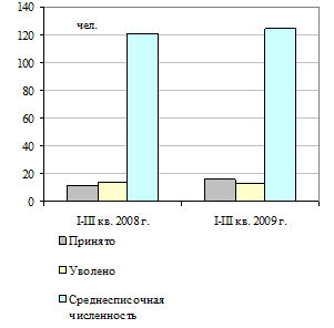 Данные представленные в табл. 4 показывают, что объем производства, за отчетный период вырос на 5%. Это вызвано, прежде всего, с программой проводимых мероприятий по повышению производительности труда и эффективности организации производства по горно-проходческому циклу. Движение кадров на предприятии ФГУП «УС-30» ТО-50 показано на рис. 3.