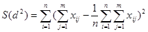 де S(d2 ) - сума квадратів відхилень сумарних рангів, виставлених кожному об'єкту всіма експертами від середнього сумарного рангу :