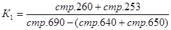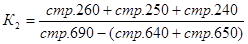 При расчете коэффициента по строке 253 учитываются только государственные ценные бумаги, ценные бумаги Сбербанка России и средства на депозитных счетах. При отсутствии соответствующей информации строка 253 при расчете К1 не учитывается. Промежуточный коэффициент покрытия (коэффициент быстрой ликвидности) К2 характеризует способность предприятия оперативно высвободить из хозяйственного оборота денежные средства и погасить долговые обязательства. К2 определяется как отношение: (денежные средства + краткосрочные финансовые вложения + дебиторская задолженность)/краткосрочные обязательства: