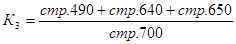 Для расчета К3 предварительно корректируются уже названные группы статей баланса, а также "дебиторская задолженность (платежи по которой ожидаются более чем через 12 месяцев)", "запасы" и "прочие оборотные активы" на сумму соответственно безнадежной дебиторской задолженности, неликвидных и труднореализуемых запасов. Коэффициент наличия собственных средств К4. Показывает долю собственных средств предприятия в общем объеме средств предприятия и определяется как отношение собственных средств (итог раздела III баланса, увеличенный на сумму срок 640 "доходы будущих периодов" и 650 - "резервы предстоящих расходов") ко всей сумме средств предприятия (стр. 700):