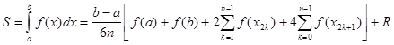 Где R - остаточный член. Это формула называется формулой Симпсона. Пример применения