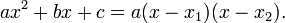 В общем случае (для неприведённого квадратного уравнения ax2 + bx + c = 0):