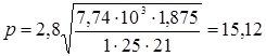] – допустимий тиск в шарнірах ланцюга, Н/мм2
