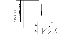 2.9 Расчёт точности остановки кабины Количественной характеристикой точности остановки кабины на этажной площадке является величина отклонения уровня пола кабины от уровня пола этажной площадки, которая определяется полуразностью тормозных путей перемещения гружёной и порожней кабины при движении в одном направлении. По ПУБЭЛ Схема к расчёту точности остановки.(Рис.2.7.1)