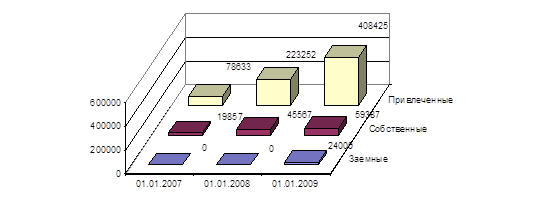 Таким образом, в период 2009-2010 г. ежегодный прирост капитала банковской системы должен находиться в интервале от 25% до 14%, а в период 2011-2020 годов - 14-9%. Глава 2. Анализ и оценка кредитной работы в ОАО Банке "ВТБ24"2.1 Характеристика ОАО Банка "ВТБ24"Банк ВТБ24 - один из крупнейших участников российского рынка банковских услуг. Мы входим в международную финансовую группу ВТБ и специализируемся на обслуживании физических лиц, индивидуальных предпринимателей и предприятий малого бизнеса. Сеть банка формируют 500 филиалов и дополнительных офисов в 69 регионах страны. Мы предлагаем клиентам основные банковские продукты, принятые в международной финансовой практике. В числе предоставляемых услуг: выпуск банковских карт, ипотечное и потребительское кредитование, автокредитование, услуги дистанционного управления счетами, кредитные карты с льготным периодом, срочные вклады, аренда сейфовых ячеек, денежные переводы. Часть услуг доступна нашим клиентам в круглосуточном режиме, для чего используются современные телекоммуникационные технологии. Основным акционером ВТБ24 является ОАО Банк ВТБ (98,93% акций). Уставный капитал ВТБ24 составляет 50,6 млрд рублей, размер собственных средств (капитала) - 96,6 млрд рублей. Коллектив банка придерживается ценностей и принципов международной финансовой группы ВТБ. Одна из главных задач группы - поддержание и совершенствование развитой финансовой системы России. Деятельность ВТБ24 осуществляется в соответствии с генеральной лицензией Банка России № 1623 от 13.07.2000 г. Деятельность Банка осуществляется на основании ежегодных планов перспективного развития. Банк "ВТБ24" ОАО относится к категории финансово стабильных кредитных организаций области. Одним из факторов стабильности является универсальность банка. Банк оказывает полный спектр банковских услуг. Ресурсная база формируется за счет привлеченных ресурсов и собственных средств. В соответствии со стратегией развития Банка основными направлениями деятельности является: повышение надежности и эффективности работы Банка, его отдельных подразделений, а также надежность его платежных и технических систем; внедрение новой идеологии работы с клиентами, основанной на сочетании стандартных технологий с индивидуальным подходом к каждому клиенту; развитие новых услуг и технологий, совершенствование качества оказываемых услуг, снижение их себестоимости; привлечение средств организаций и физических лиц, а также размещение их в экономику региона; реализация Программы развития региональной сети Банка; сохранение своих позиций и доли Банка на валютном рынке и рынке драгметаллов; сохранение своих позиций и доли Банка на рынке ипотечного кредитования, в том числе в рамках сотрудничества с Южно-Уральской Корпорацией жилищного строительства и ипотеки; обеспечение роста собственного капитала и прибыли, достаточных для проведения капитальных вложений, обеспечение сохранения рентабельности активов. 2.2 Структурный анализ пассивов и активов ОАО Банка "ВТБ24"Пассивы банка представляют собой источники средств банка для вложения в активные операции. Рассматривая структуру пассивов банка необходимо определить долю собственных, заемных и привлеченных средств. Динамика источников средств банка представлена на рисунке 1.