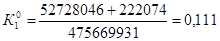 где Ри (0) = ( 82 696 800 / (52 950 120 + 56 302 729)) * 100 = 75,69% Ри (1) = ( 199 875 865 / (133 047 477 + 44 628 923)) * 100 = 112,49% Рентабельность инвестиционного капитала возросла в связи с сокращением долгосрочных обязательств. в) рентабельность всего капитала предприятия (