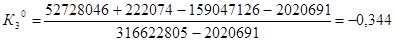 Соотнеся данные этих двух таблиц, можно сделать вывод, что на начало периода у «ТНК-ВР» было довольно неустойчивое состояние, к концу периода – нормально устойчивое. Это объясняется тем, что предприятие испытывает недостаток в собственных оборотных средствах, и привлекает большие объемы заемных средств. Более того, отрицательная величина собственных оборотных средств говорит о том, что и некоторая часть внеоборотного капитала обеспечена заемными средствами. Для более детального анализа финансовой устойчивости предприятия разработана специальная система следующих коэффициентов: 1. Коэффициент автономии или коэффициент финансовой независимости:
