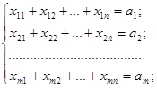 Як згадувалося вище, транспортна задача (1.1) - (1.4) є звичайною задачею лінійного програмування і може бути розв'язана симплексним методом, однак особливості побудови математичної моделі транспортної задачі дають змогу розв'язати її простіше. Всі коефіцієнти при змінних у рівняннях (1.2), (1.3) дорівнюють одиниці, а сама система обмежень (1.2), (1.3) задана в канонічній формі. Крім того, система обмежень (1.2), (1.3) складається з mn невідомих та m+n рівнянь, які пов'язані між собою співвідношенням (1.8). Якщо додати відповідно праві та ліві частини систем рівнянь (1.2) та (1.3), то отримаємо два однакових рівняння: