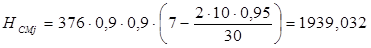 Рис. 4.4. Схема для определении высоты подвески светильников: Н – высота помещения; h С – расстояние от светильника до потолка; hР – расстояние от пола помещения до рабочей плоскости: Н О — расстояние от потолка помещения до рабочей плоскости. 3.2.4 Расчет водоснабжения Вода на ПТО расходуется на мойку агрегатов, узлов, деталей, для обслуживания сосковой резины, для промывки и проверки молочных шлангов, приготовления моющих и дезинфицирующих растворов, а также на бытовые и хозяйственные нужды. Средний часовой расход воды в установке для дезинфекции доильных аппаратов составляет: Qв = Q1 · nB / t , (м) Qв = 0,212 · 3/ 0,7=0,61 (м) где nB – количество ванн; Q1 = 0.212 м3 – вместимость ванны; t = 0.7 ч – время между двумя заменами воды. Часовой расход воды для промывки деталей и узлов: Qд.а. = Q1 · nB / t1 , м3 /ч Qд.а. = 0,212 · 3 / 2=0,32 (м3 /ч) где t1 = 2 ч – время между заменами воды. Часовой расход воды в моечной машине: Qм = Q2 · nМ / t2 , (м3 /ч) Qм = 0,1· 3/ 0,25=1,2 (м3 /ч) где nМ - количество моечных машин; Q2 = 0.1 м3 – объем камеры машины; t2 = 0.25 ч – время мойки. Часовой расход всех потребителей воды: Q = Qв + Qд.а. + Qм м3 /ч Q = 0,61 + 0,32 + 1,2=2,13 (м3 /ч) На неучтенные расходы берется 20% от полученного количества воды: Qн = SQ× 0.2 , м3 /ч Qн = 2,13 × 0.2 =0,43 , м3 /ч Общий расход воды за 1 час: Qобщ = Q + QН , м3 /ч Qобщ = 2,13 + 0,43=2,56 (м3 /ч) Годовой расход воды по ПТО составляет: Qгод = Qобщ × Фгод , (м3 ) Qгод = 2,56 × 1800=4608 (м3 ) где Фгод = 1800 ч – годовой фонд рабочего времени оборудования. 3.2.5 Расчет годового расхода электроэнергии Максимальную нагрузку силовой сети определяем по формуле:
