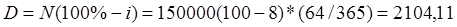 При расчетах учтем, что год был високосный Сумма договора: Количество векселей * стоимость 1*150000=150000 рублей Сумма расходов банка при погашении векселей 09.12. текущего года Рассчитаем число дней обращения векселя 61 день Таким образом, 150000*(0,13/366)*61 =3250,00 рублей – сума начисленных по векселю процентов. Сумма расхода при погашении векселя 12.12. декабря Сумму начисленных процентов примем за 3250,00 рублей Но в данном случае банк выплатит не только проценты по векселю, но и проценты по вкладу. На 09.12. на счету заемщика находилась сумма в размере 3258,90 рублей В течении 3 – дней на данную сумму начислялись проценты в размере 5% годовых 3250*(0,05/366)*3= 1,332 рубля В условиях предъявления векселя 12.12. текущего года (при условии что дата к погашению раньше срока обращения векселя) Рассчитаем дисконт формуле, приведенной в первой главе работы