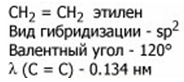 sp3 – гибридные облака располагаются под углом 109°28`. Второе валентное состояние атома углерода на примере этилена (C2H4) В молекуле этилена каждый атом углерода соеденён с тремя другими атомами, поэтому в гибридизацию вступают З орбитали: одна s и две р, т.е. происходит sр2 - гибридизация. Эти орбитали располагаются под углом 120° по отношению друг к другу.