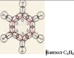 В молекуле бензола нет одинарных (С - О и двойных (С = С) связей. Все связи равноценны, их длины равны, Это особый вид связи - круговое р-сопряжение. Гибридизация - ;sр2 Валентный угол -120°