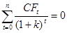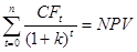 Рух грошових коштів (CFt) за період t може бути або притоком, або відтоком грошових коштів. Необхідно взяти до уваги часовий аспект вартості грошей. Це означає, нам потрібна необхідна норма прибутку (k), вживана для цього руху грошових коштів, для того щоб визначити суми поточної вартості, фінансово еквівалентні початковим рухам грошових коштів. Для того щоб оцінити розмір необхідної норми прибутку, скористаємося методом внутрішньої норми прибутку (IRR), який розв'язує рівняння NPV відносно змінної за умови рівності грошових притоків проекту грошовим відтокам.