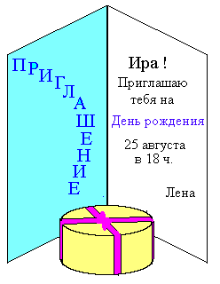 Критерий В ( Планирование )¾ написать «Этапы работы» по датам; ¾ написать «Содержание работы»; ¾ нарисовать не менее двух вариантов эскиза открытки на одну из предложенных тем; ¾ сдать работу (проект с эскизами) в установленный срок. Критерий С (Содержание)Письменный проект + работа, выполненная на компьютере В проекте должны присутствовать следующие разделы: 1. Титульный лист 2. Содержание проекта (с указанием страниц) 3. Планирование (этапы выполнения работы с указанием дат их окончания) 4. Два эскиза открытки на одну из тем (можно больше двух) 5. Обоснование выбора варианта эскиза (т.е. объяснить почему Вы выбрали именно этот вариант для реализации его на компьютере) 6. Связь работы с областями взаимодействия Требования к оформлению: ¾ работа должна быть выполнена на листах А4; ¾ должен присутствовать и быть правильно оформлен титульный лист; ¾ листы пронумерованы, скреплены между собой и вложены в файл. Творческая работа №1 «Создание надписей»Цель: научить создавать надписи. Задание 1. Разработать рисунок приглашения и ввести текст приглашения. ("Приглашение.bmp") (Приложение 6) Задание 2. Выполнить следующий рисунок. ("Песенка.bmp") (Приложение 7) Подсказка: 1. При помощи инструмента «Линия» нарисовать лесенку и нотный стан. 2. Инструментом «Эллипс» нарисовать овалы. 3. «Кистью» или «Карандашом» нарисовать скрипичный ключ. 4. Выполнить надписи и, выделяя их, перемещать (копировать) в нужное место. Задание 3. Сделать визитку. Размер визитки должен быть 9х5 см. Пример: "Визитка.bmp" (Приложение 8) Подсказка: 1. Установить размеры экрана, выполнив команду Рисунок -> Атрибуты. 2. Напечатать название фирмы, выбрав шрифтовое оформление, выделить этот текст, повернуть на 2700 и переместить к краю визитки. 3. Отделить напечатанный текст. 4. Выбирая шрифтовое оформление, напечатать фрагменты текста переместить их по ее полю. 5. Завершить оформление визитки, разделив части текста. В данном параграфе были рассмотрены творческие задания, которые можно использовать при изучении графического и текстового редакторов и были приведены примеры творческих заданий.. 2.3 Метод проектов в преподавании информатикиВ данном параграфе будут раскрыты такие понятия как проект, метод проектов, проектирование, рассмотрены основные требования к использованию метода проектов, основные этапы выполнения проекта, система оценивания проектов. Будет рассмотрена проектную деятельность на уроках информатики на примере создания web-сайта. По определению проект - это совокупность определенных действий, документов, предварительных текстов, замысел для создания реального объекта, предмета, создания разного рода теоретического продукта.Это всегда творческая деятельность [24]. Проектный метод в школьном образовании рассматривается как некая альтернатива классно-урочной системе. Современный проект учащегося -это дидактическое средство активизации познавательной деятельности, развития креативности и одновременно формирования определенных личностных качеств [12]. Метод проектов - педагогическая технология, ориентированная не на интеграцию фактических знаний, а на их применение и приобретение новых. Активное включение школьника в создание тех или иных проектов дает ему возможность осваивать новые способы человеческой деятельности в социокультурной среде [12]. Всякая деятельность с дет