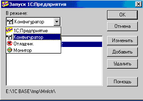 Рисунок 9 - Режимы работы программ “1С: Предприятие” Результатом конфигурирования является конфигурация, которая представляет собой модель предметной области. В процессе конфигурирования формируется структура информационной базы, алгоритмы обработки, формы диалогов и выходных документов. Информационная структура проектируется на уровне предусмотренных в системе типов обрабатываемых объектов предметной области. В процессе исполнения система уже оперирует конкретными понятиями, описанными на этапе конфигурирования. При работе пользователя в режиме исполнения конфигурации обработка информации выполняется как штатными средствами системы, так и с использованием алгоритмов, созданных на этапе конфигурирования. Для описания специфических алгоритмов обработки информации и создания интерфейса, ориентированного на удобное представление описанных в конфигурации данных, в системе «1С: Предприятие» используется несколько технологических механизмов: 1) Встроенный программный язык. Необходимость наличия встроенного языка определена концепцией настраиваемости системы. Синтаксис встроенного языка вполне отвечает стандартам высокоуровневых языков. Язык является предметно – ориентированным. Он поддерживает основные базовые типы данных (числовой, строковый, дата), а также специализированные типы данных, предназначенные для отражения объектов предметной области. Работа с этими типами данных в языке организована с использованием объектной техники и имеет существенные отличия от работы с обычными базовыми типами данных. Каждый агрегатный тип данных, как правило, имеет набор атрибутов и методов. Атрибуты по свойствам напоминают переменные, т. е. им можно присваивать или читать их значения. Методы — это те действия, которые может выполнять агрегатный тип данных. Методы могут иметь или не иметь возвращаемое значение. Агрегатными типами данных во встроенном программном языке являются следующие: константа, справочник, документ, перечисление, запрос, список значений, таблица значений, регистр, текст, таблица и другие. Язык ориентирован на пользователей различной квалификации. В частности, его отличает мягкая типизация данных (обеспечивающая быстрое написание программных модулей) и жесткий контроль синтаксических конструкций, уменьшающий вероятность ошибок. 2) Механизм запросов. Для получения произвольных отчетов сложной структуры в системе предусмотрен предметно-ориентированный механизм запросов. Данное средство опирается на существующую условно-переменную структуру информационной базы системы, что позволяет сравнительно просто описывать достаточно сложные запросы. 3) Встроенный текстовый редактор используется системой для создания программных модулей на встроенном языке и для редактирования документов в текстовом виде. Одной из особенностей редактора является возможность контекстного выделения цветом синтаксических конструкций встроенного языка. Благодаря тому, что встроенный язык системы имеет мощные средства манипулирования текстами, текстовый формат может быть успешно использован для обмена с другими системами самой различной информацией. 4) Встроенный редактор диалогов. Работа с настраиваемыми структурами данных и работа в интерфейсе операционной системы Windows вызывает необходимость произвол