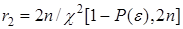 Довірчий інтервал для інтенсивності відмов λ за експоненціальним розподілом знаходиться з допомогою квантилів розподілу χ2 , в яких параметрами є довірча ймовірність та кількість ступенів свободи r. Нижня λн і верхня λв границі інтенсивності відмов знаходяться як: