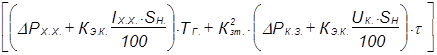 = Вариант А: S1кат = 89,3× 1600 / 100 = 1429 < 2240; Вариант Б: S1кат =89,3 × 1000 / 100 = 893 < 1400. Оба варианта обеспечивают надежное электроснабжение, как в нормальном, так и в аварийном режимах. 2.6 Определяются капитальные затраты, руб. по формуле: К = n× Ктр. , (4) где n – число трансформаторов в подстанции; Ктр – стоимость одного трансформатора.[14] Вариант А: К1 = 2 × 2027358 = 4054716 руб; Вариант Б: К2 = 2 × 1571878 =3143756 руб. 2.7 Определяются приведённые потери, кВт× час: ∆W=n× где