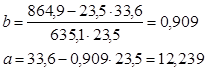 Расчеты произведем в табл. 2.3. Подставив полученные значения в систему нормальных уравнений, получим