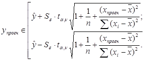 значит, линейную модель можно считать точной, т.к. Е<5%/ 6. С помощью линейной модели осуществим прогноз Y при α=0,1 и х=0,8хmax