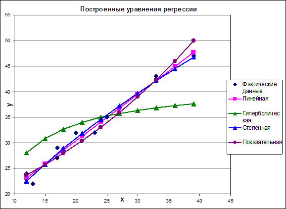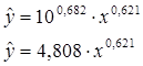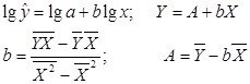 значит, расчетные значения ŷ для гиперболической модели отличаются от фактических значений на 14,45%. 8. б) Построим степенную модель, которая имеет вид